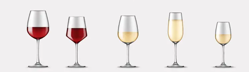 Si los vinos tienen gas carbónico o espuma, podríamos necesitar copas altas y delgadas para evidenciar el tamaño de la burbuja que será determinante para la calidad de los mismos, aunque sabemos que hoy en día los espumosos gustan en copas más abiertas como para blancos tranquilos.